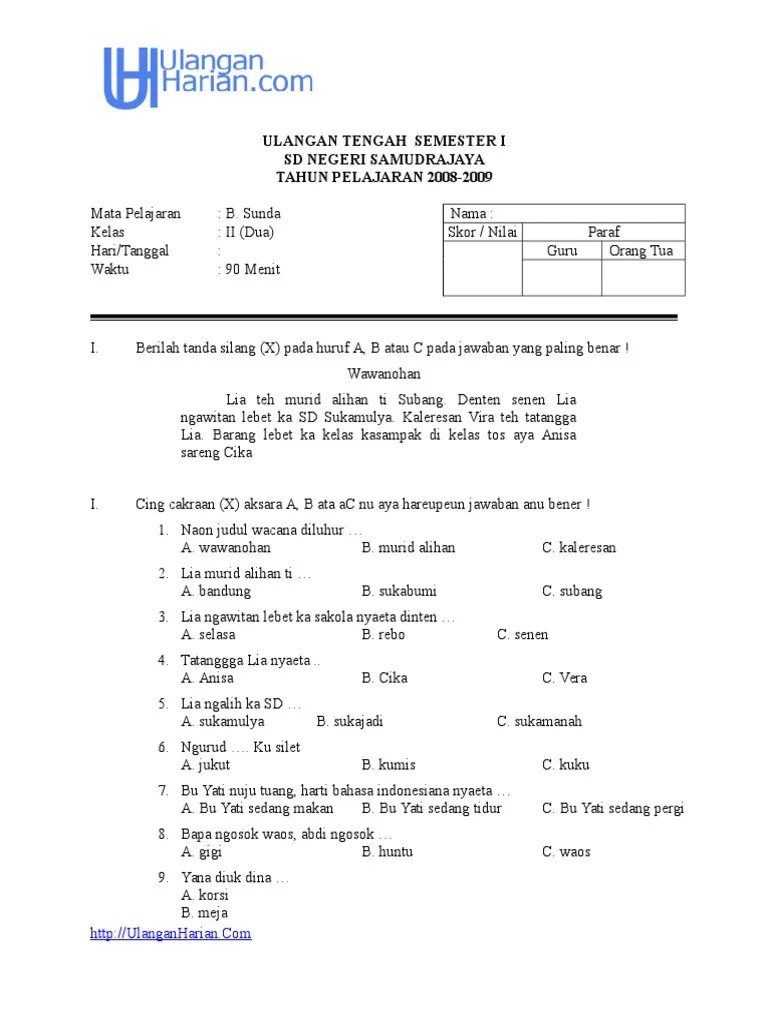 Oleh admin diposting pada 26 januari 2021. Kisi kisi soal uas bahasa sunda sd kelas 1 s d 6. Soal uts ipa kelas 2 sd semester genap dan kunci jawaban. Soal latihan uas pas bahasa sunda sd mi kelas 6 semester 1. Pin di soal sd uas sm 1 source: